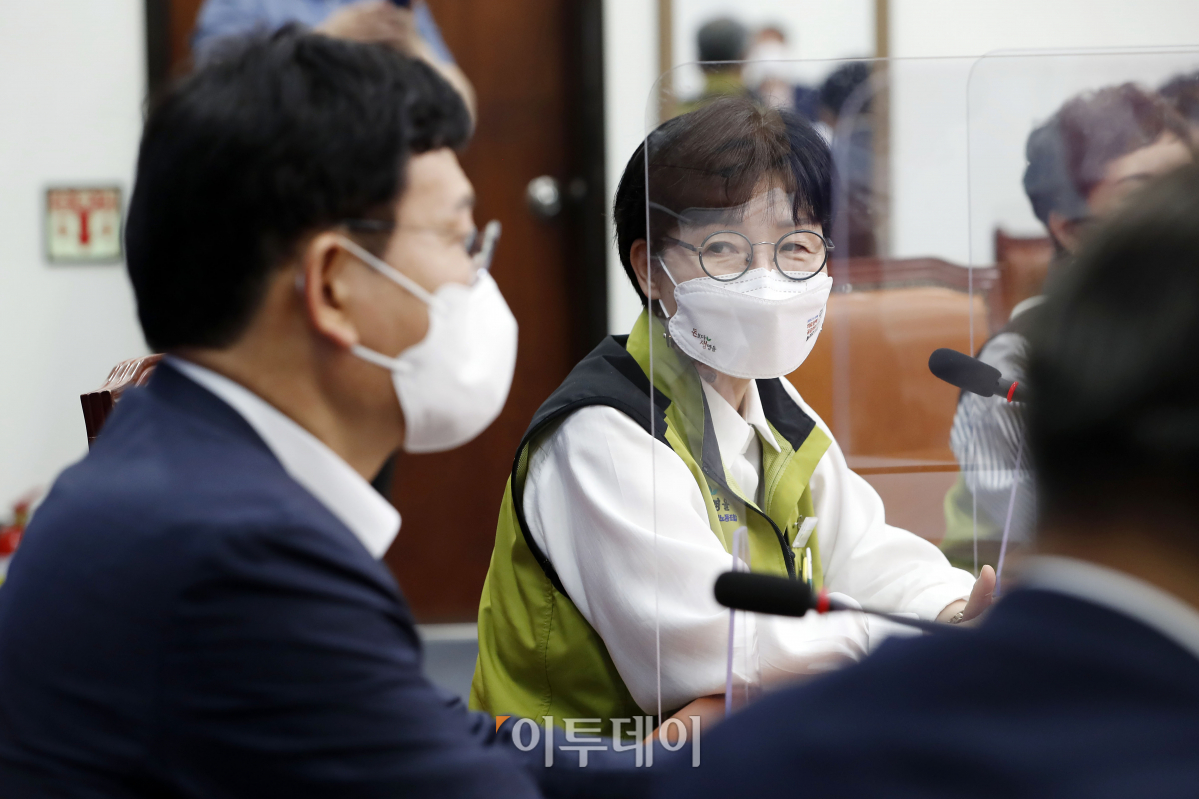 나순자 보건의료노조 위원장이 2일 서울 여의도 국회에서 열린 더불어민주당-보건의료노조 간담회에서 발언을 하고 있다.