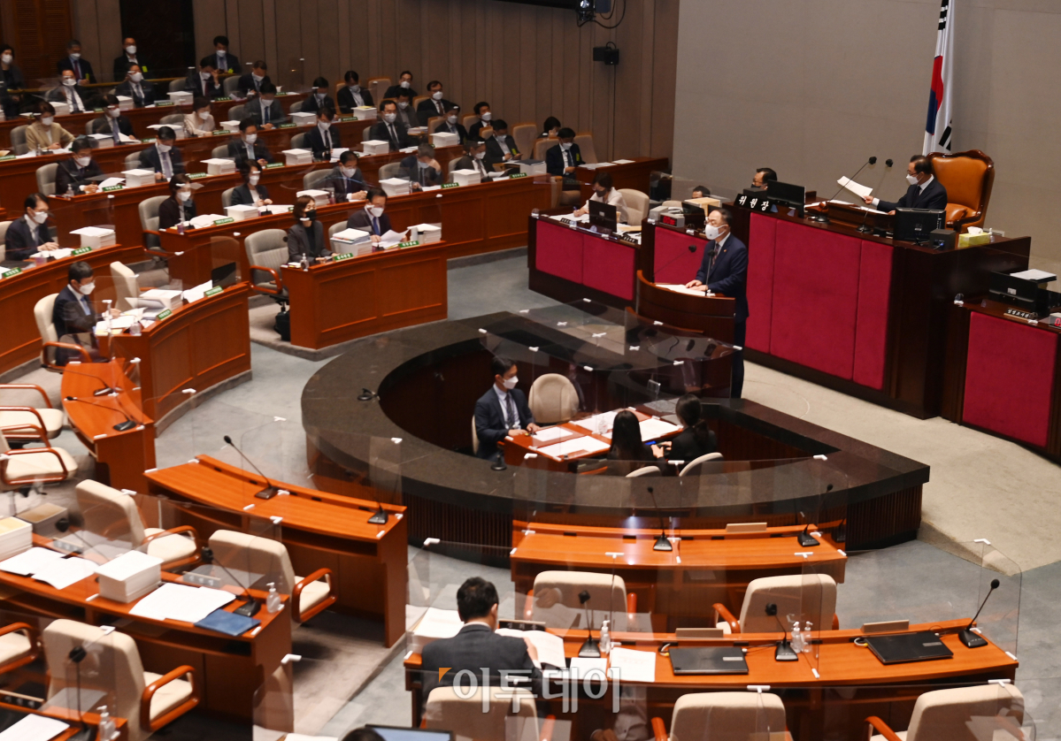 6일 오전 국회에서 열린 예산결산위원회 전체회의에서 홍남기 부총리 겸 기획재정부 장관이 결산보고를 하고 있다.