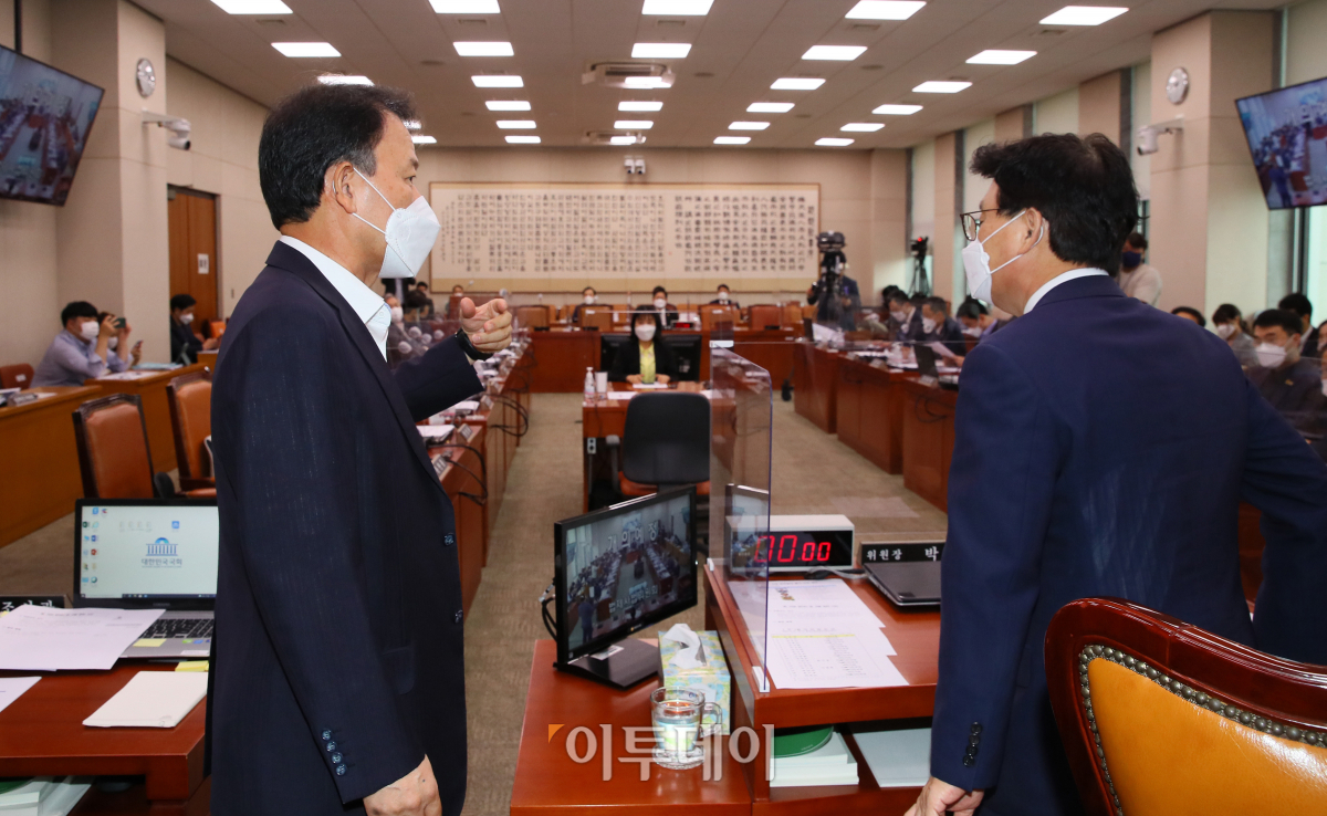 국민의힘 윤한홍 간사가 6일 서울 여의도 국회 법제사법위원회에서 '윤석열 전 검찰총장의 고발 사주 의혹'과 관련한 현안 질의를 위한 전체회의에서 회의 시작 전 김오수 검찰총장의 출석을 요구하고 있다.