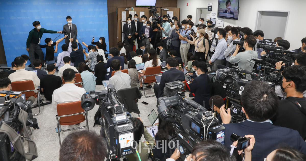 [포토] 김웅 의원 기자회견에 모인 취재진