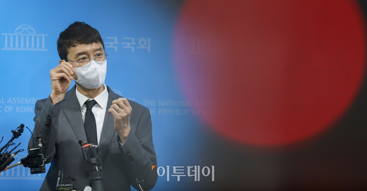 김웅 국민의힘 의원이 8일 서울 여의도 국회 소통관에서 지난해 총선 당시 윤석열 검찰총장의 측근 검사로부터 여권 인사에 대한 고발장을 넘겨받았다는 이른바 '고발사주' 의혹과 관련한 기자회견을 마친 뒤 취재진의 질문에 답변하고 있다.