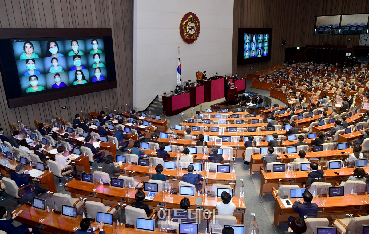 윤호중 더불어민주당 원내대표가 8일 서울 여의도 국회에서 열린 본회의에서 교섭단체 대표연설을 하고 있다.