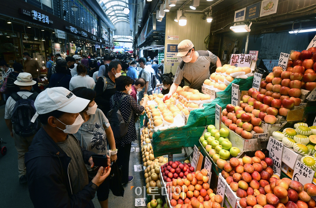 추석을 일주일여 앞둔 12일 서울 동대문구 청량리종합시장이 제수용품을 준비하려는 시민들로 붐비고 있다.