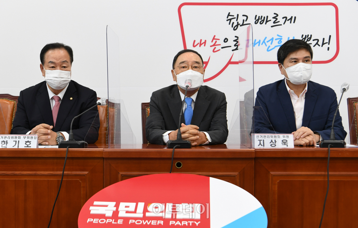 정홍원 국민의힘 선거관리위원장이 15일 국회에서 열린 국민의힘 경선 선거관리위원 회의에서 모두발언을 하고 있다.