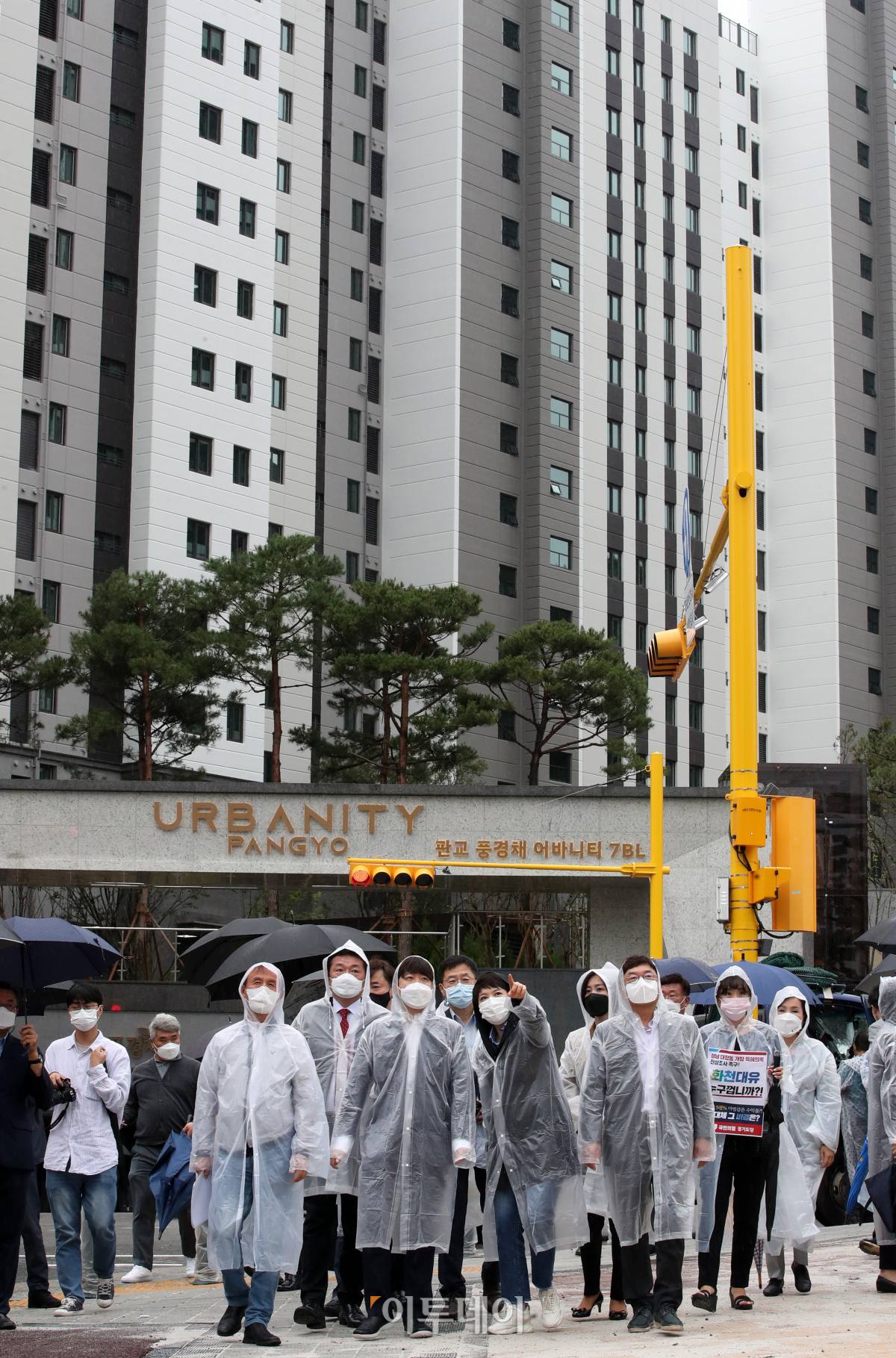 이준석 국민의힘 대표와 김은혜 국민의힘 의원이 29일 오전 경기 성남시 판교대장동 개발 특혜의혹 진상조사를 위해 판교대장동 일대를 방문해, 공사현장을 둘러보고있다. 국회사진취재단