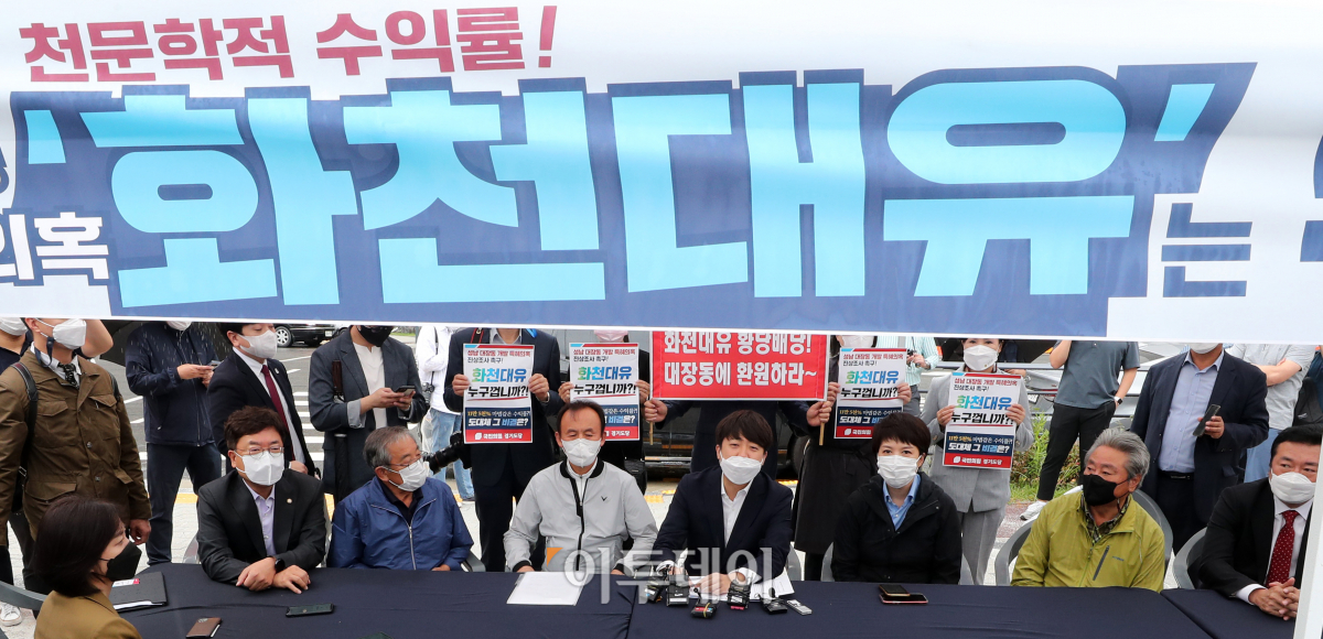 이준석 국민의힘 대표와 김은혜 국민의힘 의원이 29일 오전 경기 성남시 판교대장동 개발 특혜의혹 진상조사를 위해 판교대장동 일대를 방문해, 원주민들과 간담회를 갖고 있다. 국회사진취재단