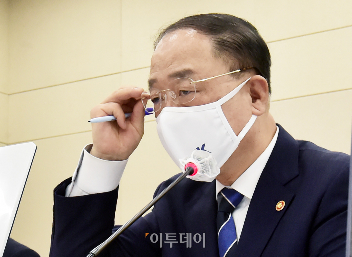 [포토] 안경 고쳐쓰는 홍남기 부총리