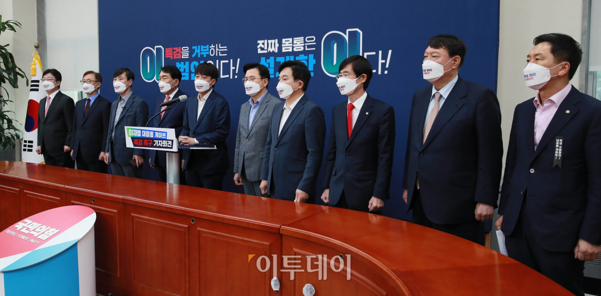 이준석 대표와 김기현 원내대표를 비롯한 당 지도부는 이날 오전 서울 여의도 국회 본관 앞 계단에서 '특검 수용 촉구 천막투쟁본부' 출정식을 갖고 릴레이 농성을 시작한다.