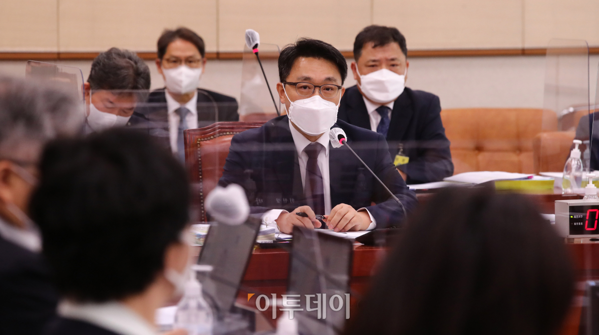 김진욱 고위공직자범죄수사처장이 12일 오전 국회 법제사법위원회에서 열린 고위공직자범죄수사처에 대한 첫 국정감사에서 의원들의 질문에 답변하고 있다.