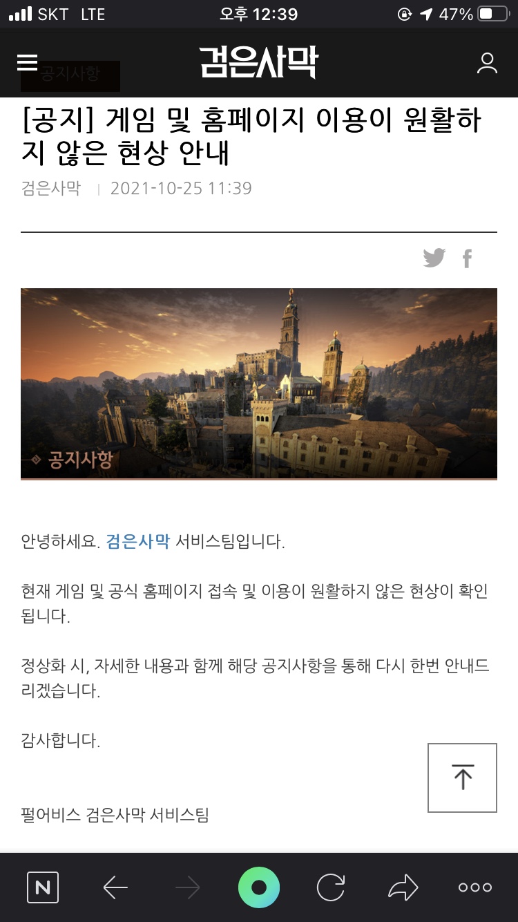 검은사막을 서비스하는 펄어비스 역시 “현재 게임 및 공식 홈페이지 접속 및 이용이 원활하지 않은 현상이 확인된다”며 “정상화 시, 자세한 내용과 함께 해당 공지사항을 통해 다시 한 번 안내드리겠다”고 밝혔다.