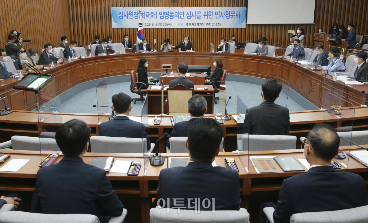 홍문표 인사청문특별위원회 위원장이 2일 오전 서울 여의도 국회에서 열린 최재해 감사원장 후보자 인사청문회에서 의사봉을 두드리고 있다.