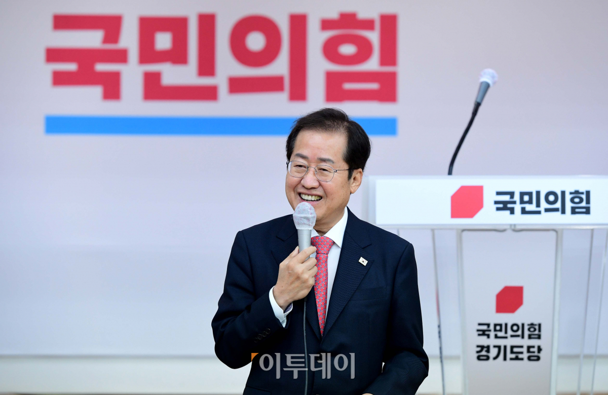 홍준표 국민의힘 대선경선후보가 4일 경기 수원시 국민의힘 경기도당위원회에서 지지자들과 간담회를 갖고 인사말을 하고 있다.