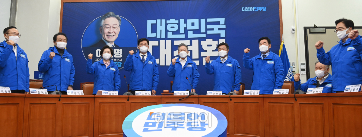 [포토] 대선승리 다짐하는 이재명 후보와 민주당 지도부