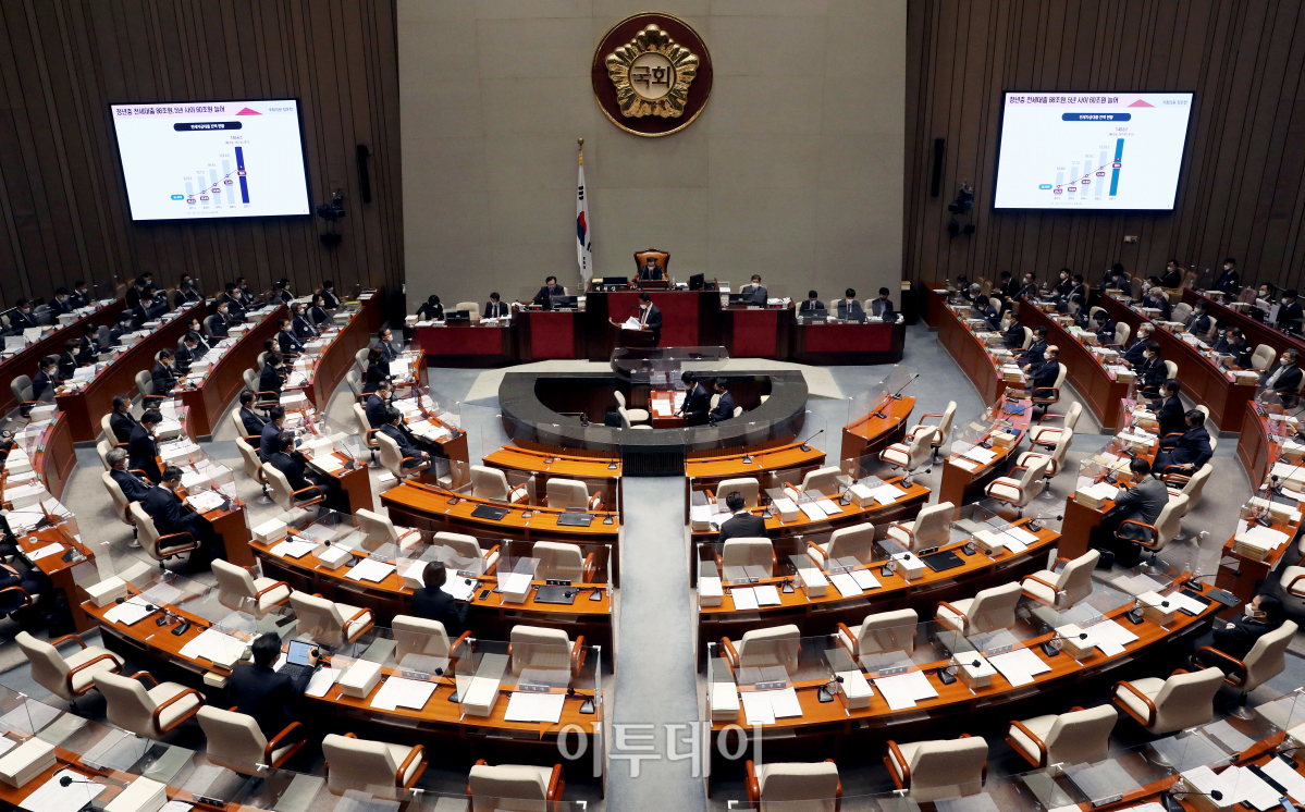 8일 오전 서울 여의도 국회에서 열린 예산결산특별위원회 종합정책질의에서 정운천 국민의힘 의원이 가계부채 급증과 관련해 질의하고 있다.