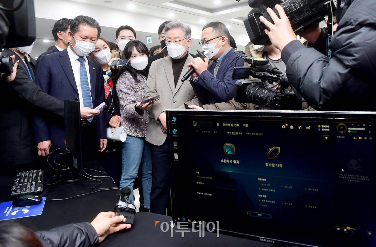 [포토] 'LoL 게임화면 살펴보는 이재명 후보'