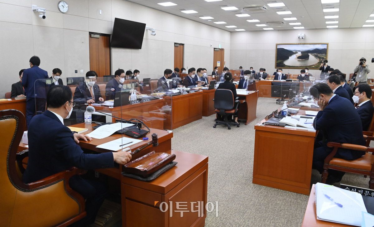 이종배 예결위 소위원장이 17일 서울 여의도 국회에서 열린 예결위 2022년 예산안등조정소위에서 회의를 주재하고 있다. 신태현 기자 holjjak@