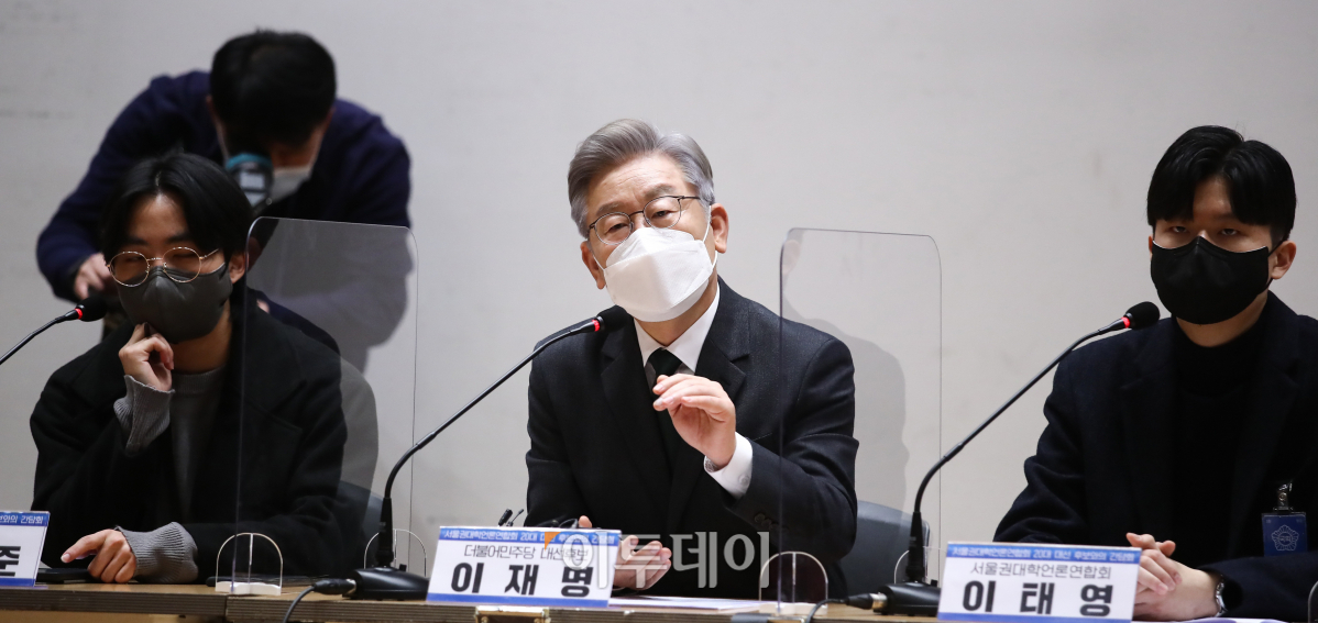 [포토] 이재명, 서울권 대학언론연합회 초청 간담회 참석