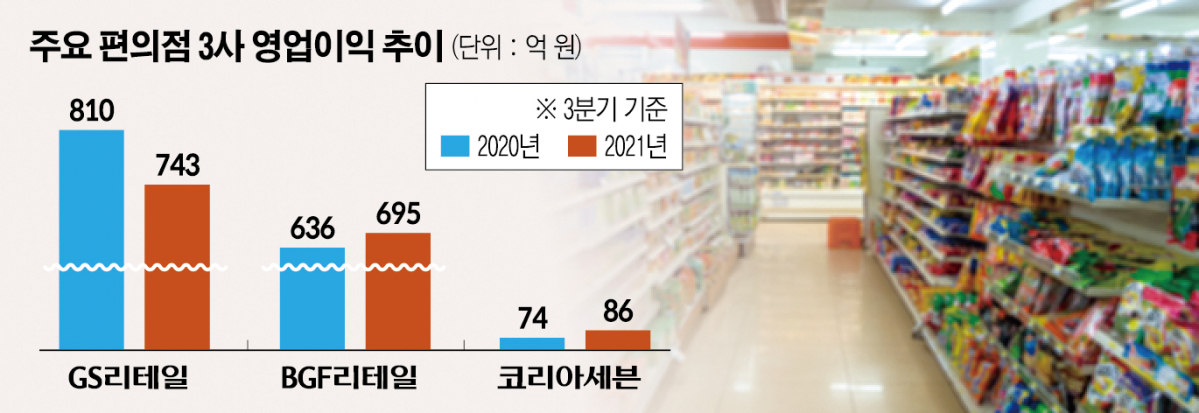 GS25, CU, 세븐일레븐 등 편의점 3사의 올 3분기 실적은 희비가 엇갈렸다. CU, 세븐일레븐은 계절적 성수기, 재난지원금 영향으로 실적 반등에 성공한 반면 GS25는 남혐 이슈 등 악재로 타격을 입었다. 편의점 3사는 위드 코로나(단계적 일상 회복)에 힘입어 4분기에는 호실적을 노린다.