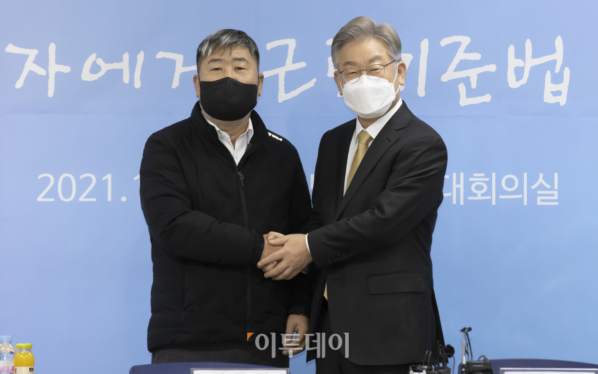 [포토] 인사하는 이재명 후보-김동명 위원장
