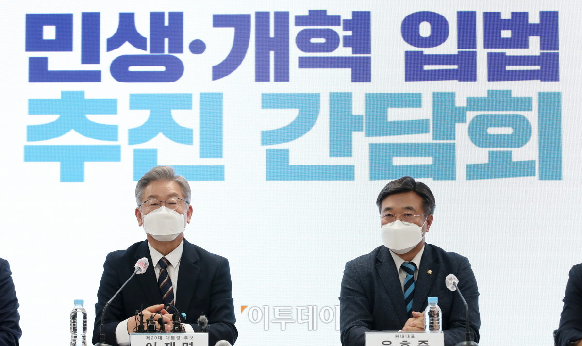 이재명 더불어민주당 대선 후보가 24일 서울 여의도 중앙당사 회의실에서 열린 민생·개혁 입법 추진 간담회에서 모두발언을 하고 있다.