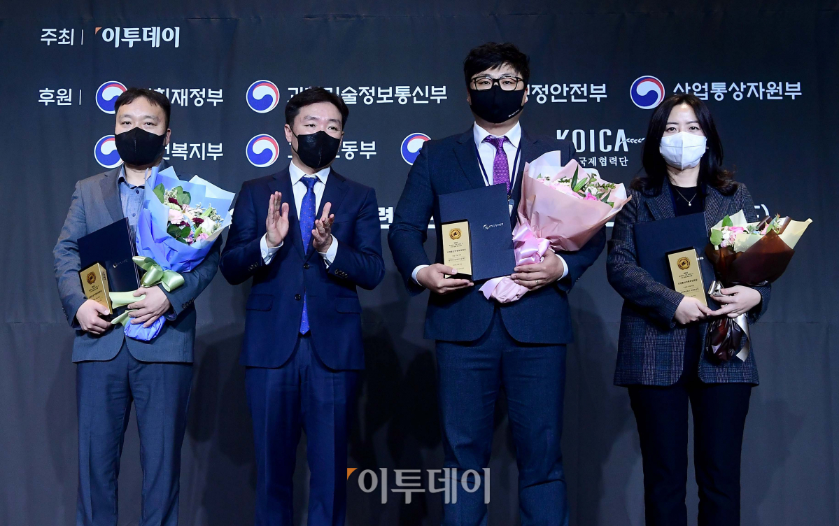 25일 서울 여의도 전경련회관 컨퍼런스센터에서 열린 ‘2021 함께하는 기업 어워드 & CSR 필름페스티벌’에서 심사위원장인 박지혜 유한책임회사 위대한상상 실장, 김태우 아모레퍼시픽 부장, 송성엽 블랙야크강태선나눔재단 사무국장이 윤성혁 산업통상자원부 부이사관에게 산업통상자원부장관상을 수상한 뒤 기념촬영을 하고 있다. 이투데이가 주최한 ‘함께하는 기업 어워드 & CSR 필름페스티벌’은 한 해 동안 사회적 가치 창출을 위해 도모한 ‘함께하는 기업’들의 CSR활동 발자취를 공모하고 그 업적을 치하, 격려하는 행사로 2012년 첫걸음을 내딛어 올해로 10회째를 맞이했다.