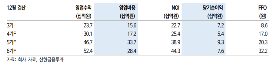 신한금융투자는 "신규 자산 매입을 위한 차입금(4500억 원) 준비는 금리 상승이 가팔라지기 전인 지난 9월에 완료해 금리상승 악영향 우려는 없다"며 "오히려 내년에는 회사채와 그린본드 발행 등 리파이낸싱을 통한 비용 개선이 가능하다"고 평가했다.
