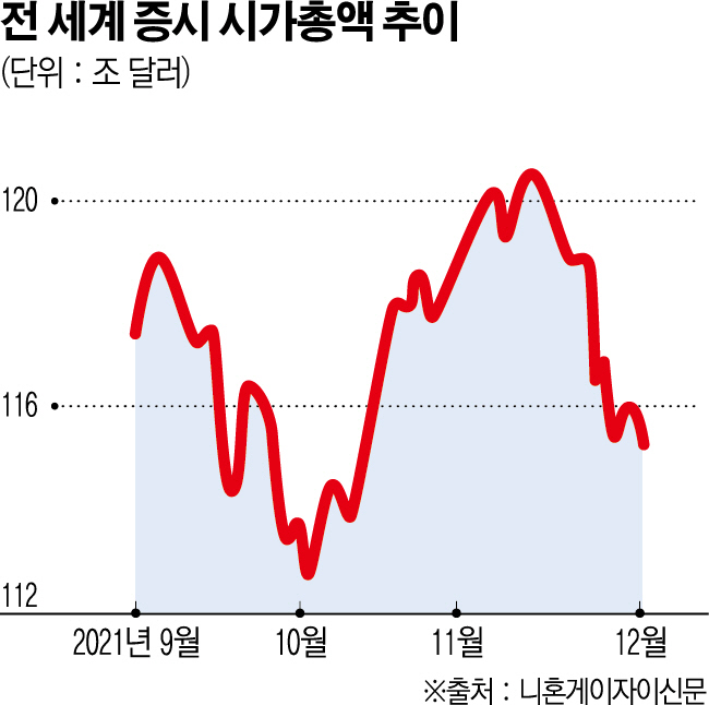 오미크론 등장 직전까지 사상 최고치 행진을 이어가던 미국증시와 경제 정상화에 시동을 걸었던 유럽증시 변동성도 급격하게 커졌다. 지난주 두 지역의 시총이 한때 하루 새 4~5%가량 줄어드는 장면도 연출됐다.