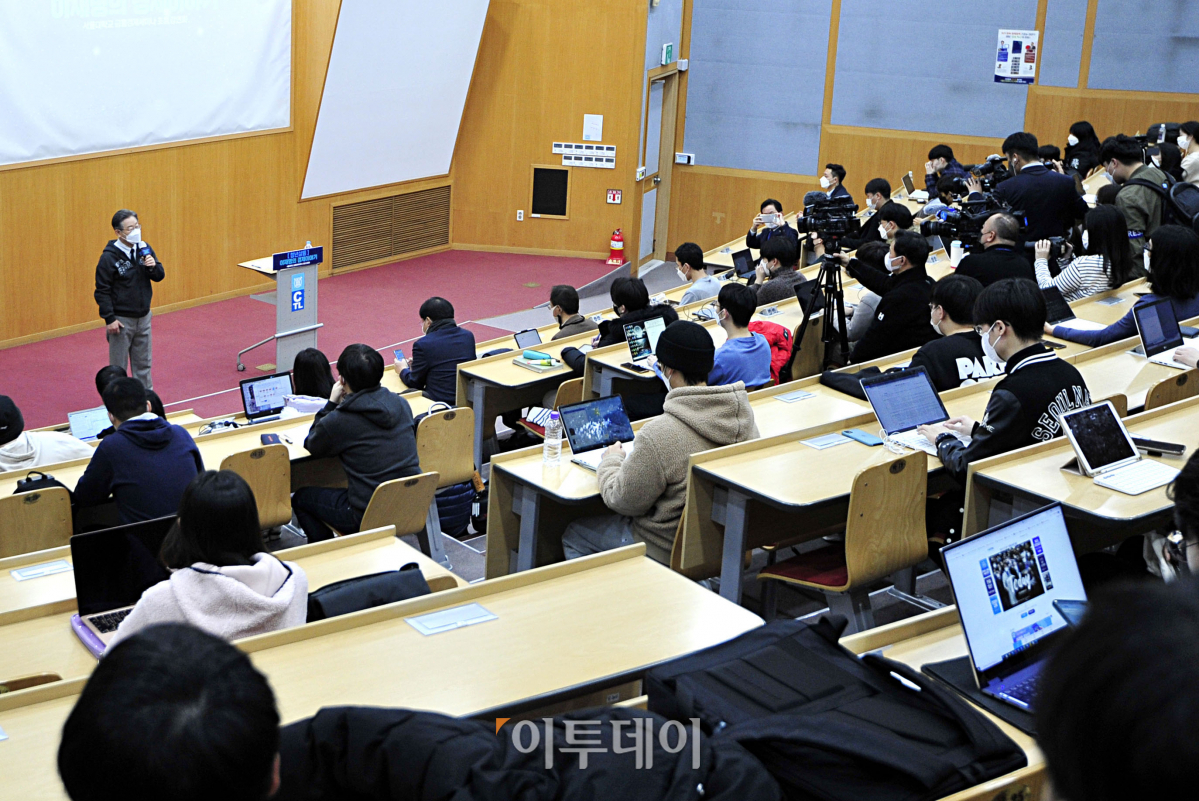 [포토] 서울대에서 경제 강연하는 이재명 후보