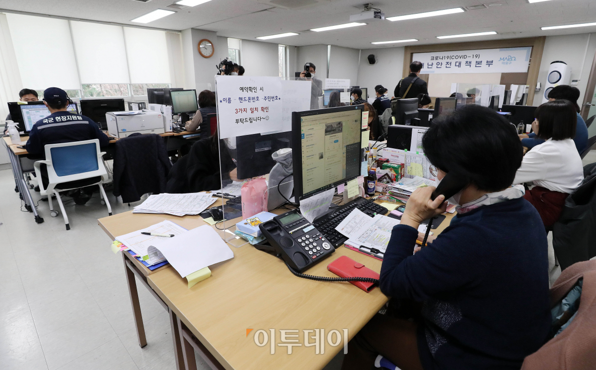 9일 오전 서울 마포구 마포구청 코로나19 재난안전대책본부에서 관계자들이 분주한 모습을 보이고 있다. 이날 코로나19 확진자는 7102명 발생, 위중증 환자는 857명으로 역대 최다를 기록했다.