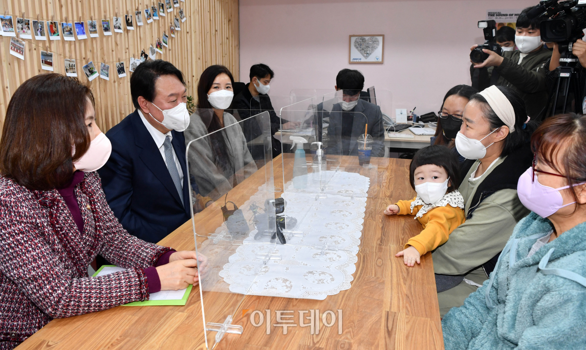 [포토] 한부모 어려움 듣는 윤석열 후보