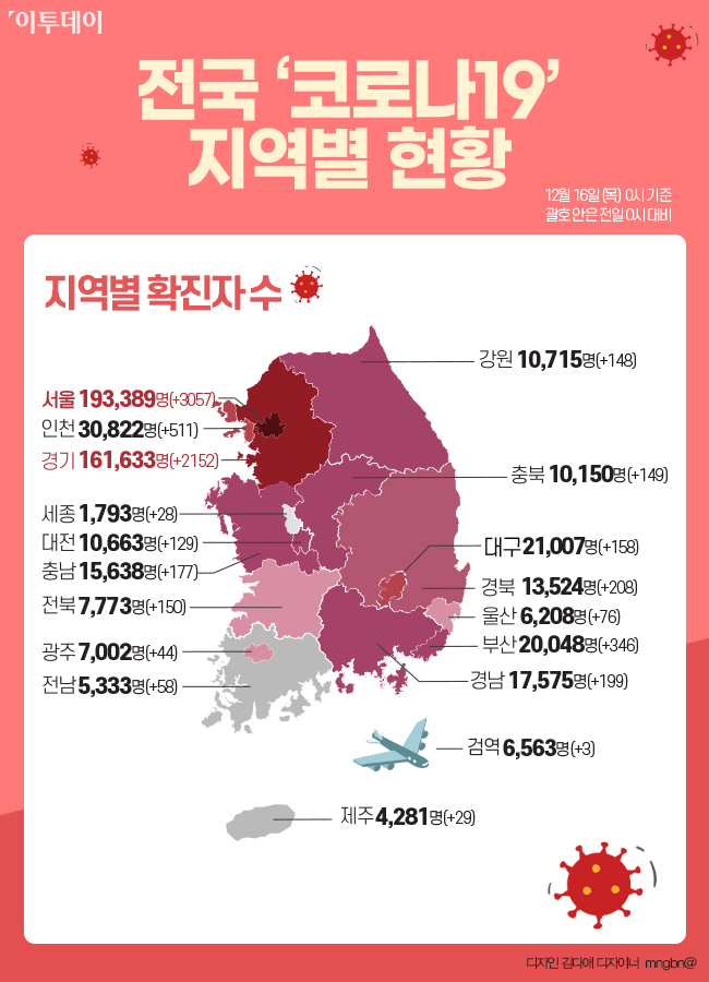 [코로나19 현황] 국내 확진자 '총 54만4117명' 7622명 추가…사망자 62명 늘어- 12월 16일 0시