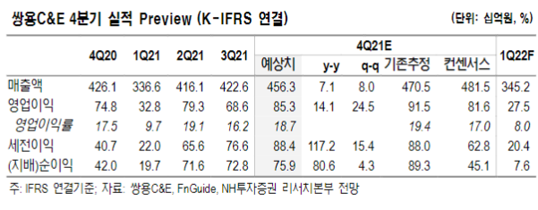 쌍용C&E, 쉽지 않은 2022년-NH투자증권
