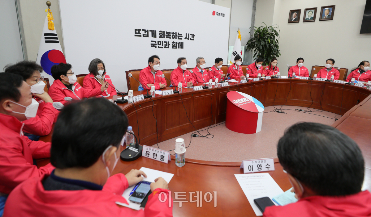 김종인 국민의힘 총괄선대위원장이 3일 국회에서 열린 중앙선거대책위원회의에 참석, 모두발언을 하고 있다.