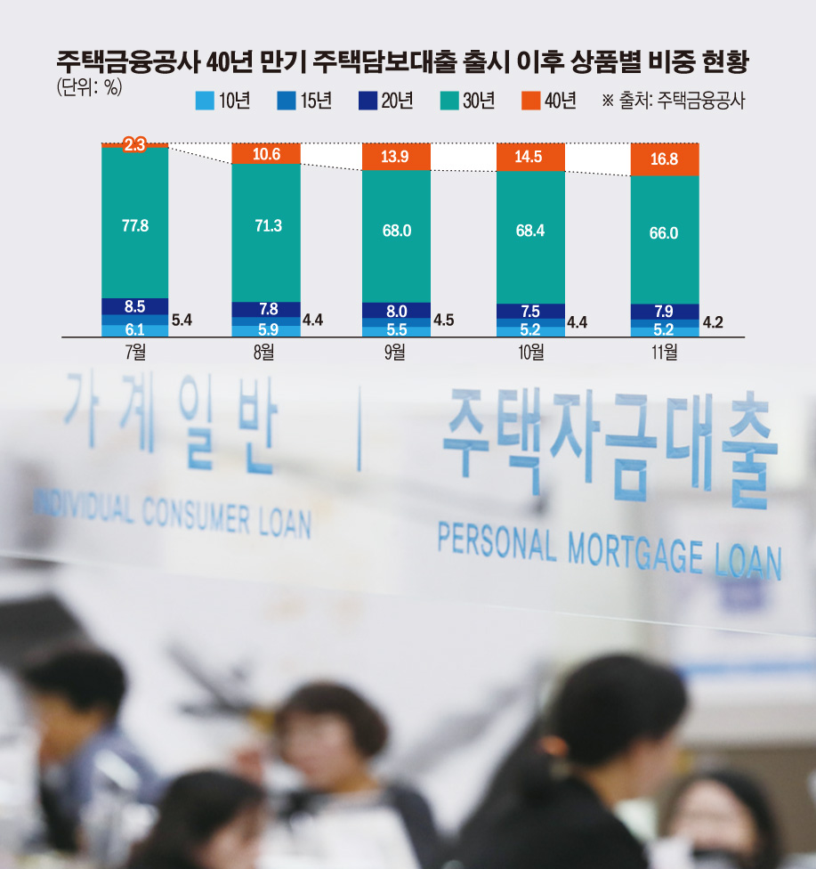 40년 만기의 초장기 주택담보대출이 출시 4개월 만에 7배 넘게 늘어났다.