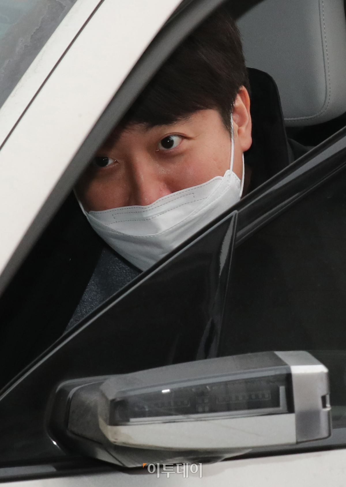 국민의힘 이준석 대표가 5일 오후 국회 당대표실을 나서 차량에 오르고 있다.