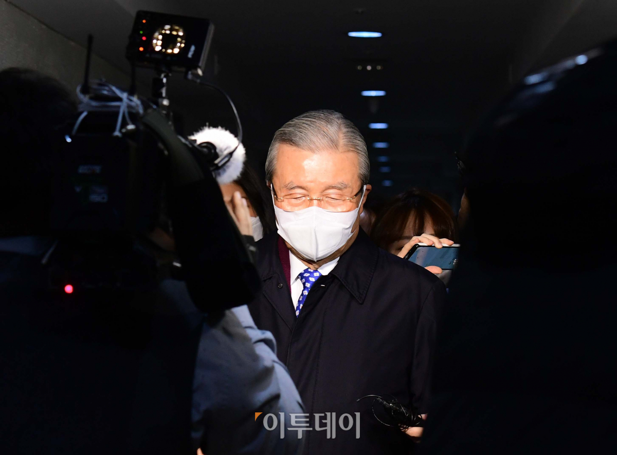 김종인 전 국민의힘 총괄선대위원장이 10일 서울 종로구 광화문의 사무실에서 이준석 국민의힘 대표와 회동한 뒤 나서고 있다.