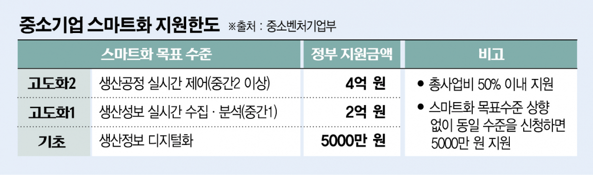 정부는 제조 중소기업의 경쟁력을 강화하기 위해 스마트공장 보급을 국정과제로 삼고 있다. 작년 말까지 2만5000개의 스마트공장을 보급했고, 올해 5000개 이상을 추가 보급해 3만 개까지 늘리는 게 목표다.