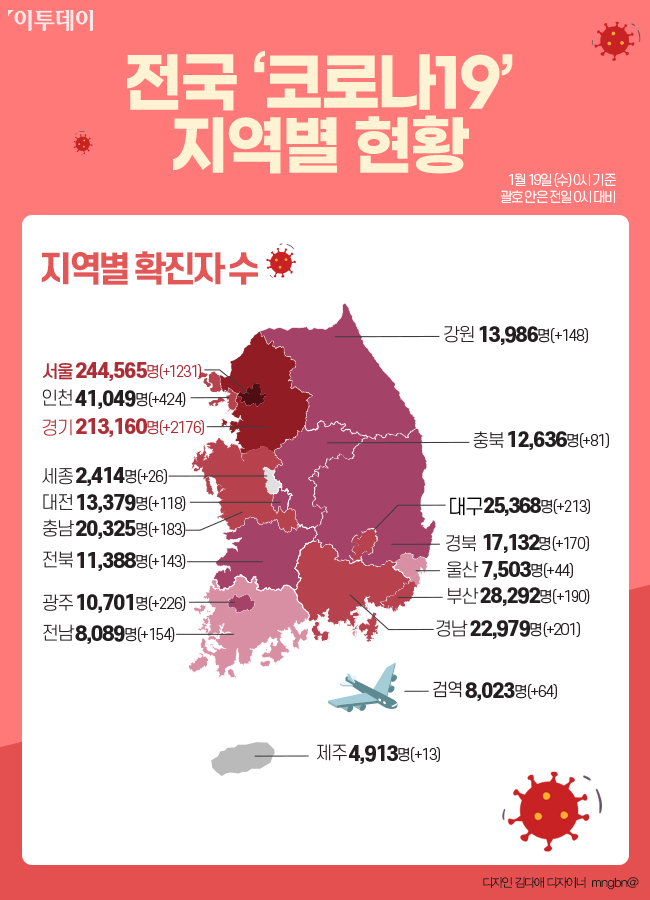 질병관리청 중앙방역대책본부에 따르면 19일 0시 기준 코로나19 확진자는 전날 0시 발표 때보다 5805명 늘었다.