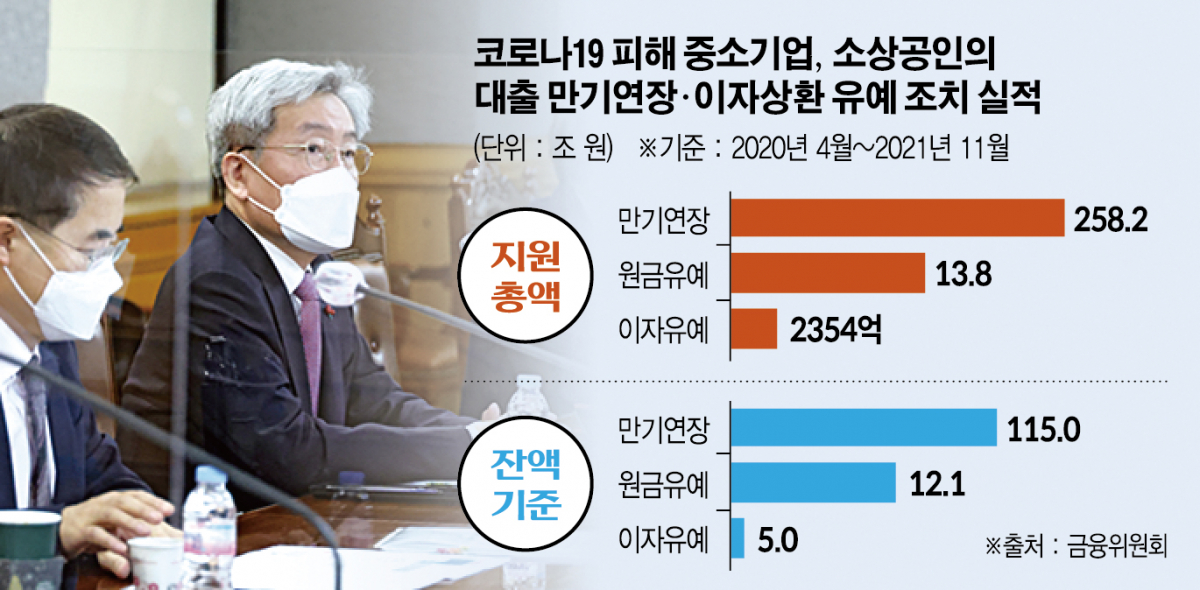 이날 고승범 위원장 주재 간담회에서 전문가들은 △이자 유예 조치부터 종료 △연장 기간 6개월에서 3개월로 단축 △일정규모 이상 중소기업 원금·이자유예 조치 우선 종료 등을 제언했다.