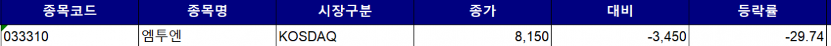 먼저 상장폐지가 결정된 신라젠의 최대주주인 엠투엔이 하한가로 직행했다.