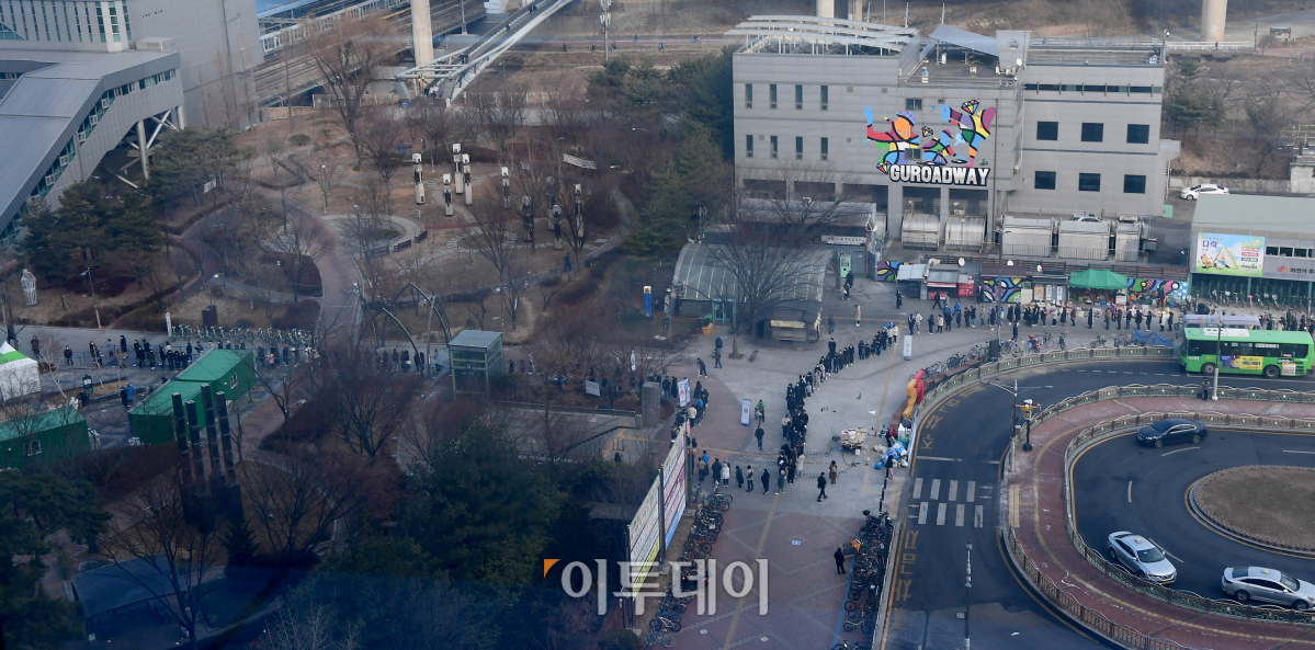 [포토] 오미크론 변이 확산, 길게 줄선 시민들