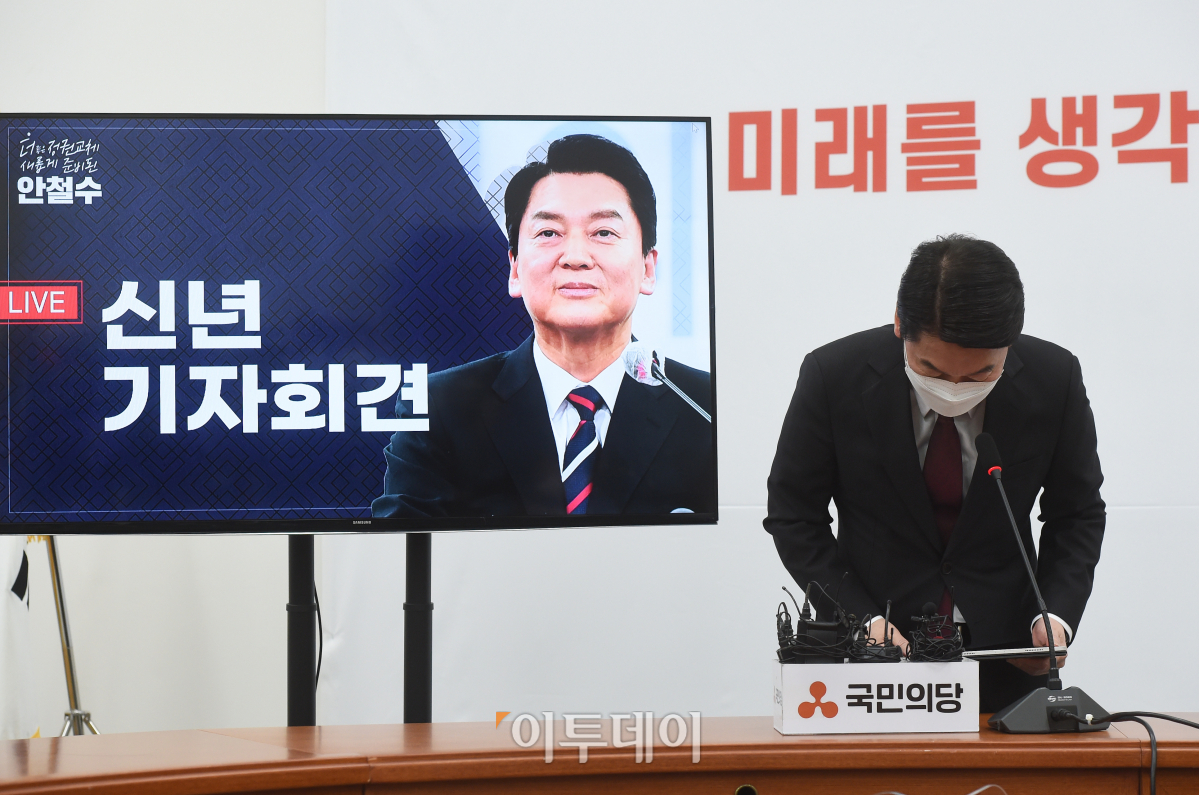 안철수 국민의당 대선 후보가 25일 오전 여의도 국회에서 열린 신년 기자회견에서 인사를 하고 있다.