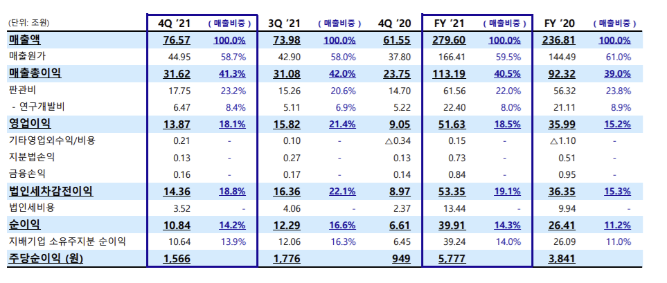 2021년 4개 분기 모두 해당 분기 최대 매출을 기록했고, 연간 기준으로도 역대 최대 매출을 경신했다.