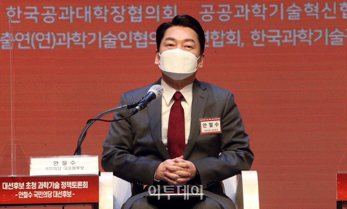 안철수 국민의당 대선후보가 27일 오후 서울 강남 한국과학기술회관 국제회의장에서 열린 대선후보 초청 과학기술 정책토론회에서 발언하고 있다. 국회사진취재단