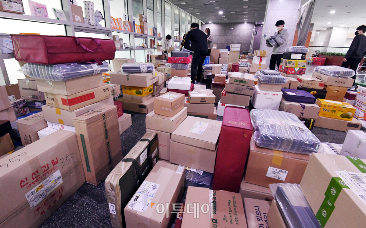 [포토] 국회 의원회관, 수북이 쌓인 설 선물 택배