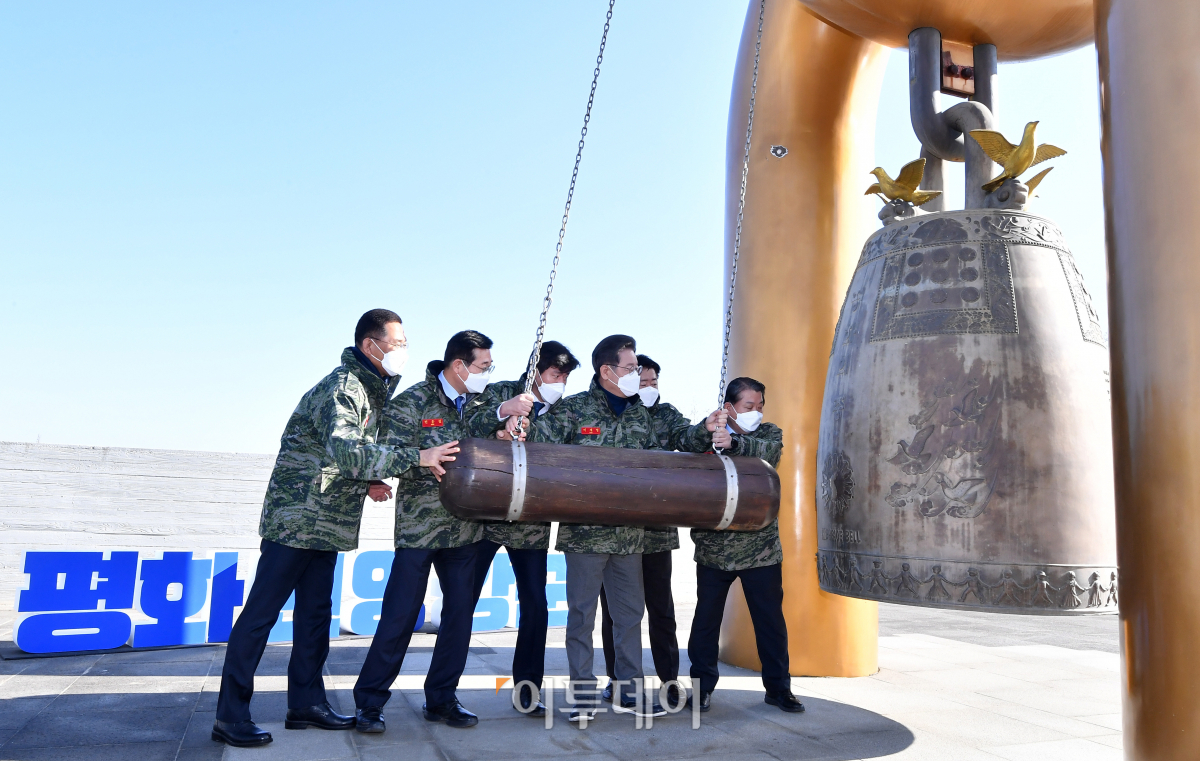 [포토] 이재명, 해병대2사단 찾아 평화의종 타종