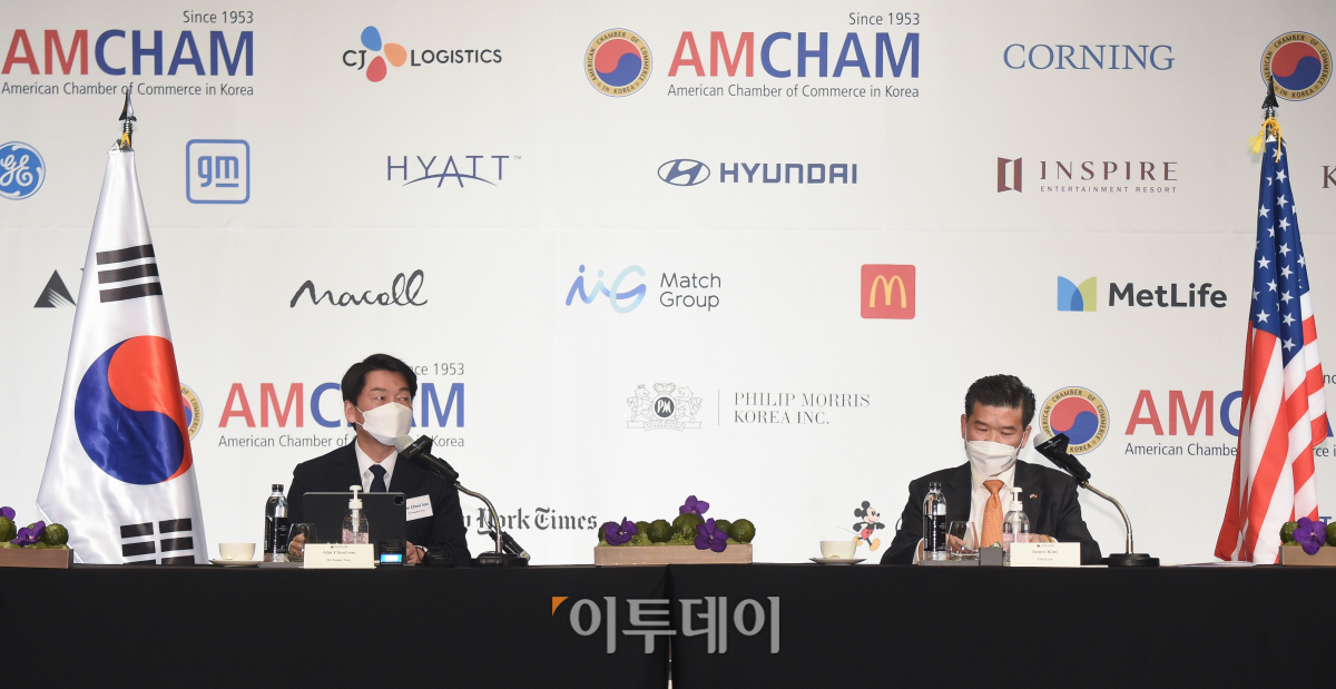 [포토] 안철수 후보, 주한미국상공회의소 초청 간담회