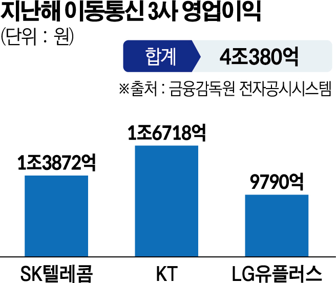 9일 이동통신업계의 지난해 실적 발표가 마무리됐다. 금융감독원 전자공시시스템에 따르면 지난해 이동통신 3사의 영업이익 총합은 4조380억 원을 달성했다. 3사 합산 영업이익 기준으로는 역대 최대치다.