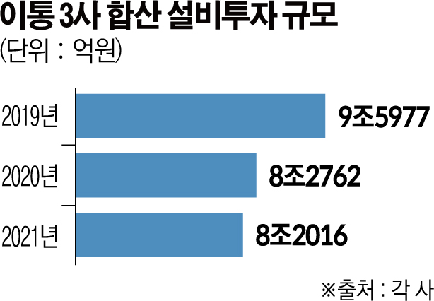 지난해 통신 3사의 설비투자 규모는 8조2016억 원으로 추산된다. 직전 해인 2020년 3사 합산 설비투자 규모가 8조2762억 원이었던 것과 비교하면 756억 원(0.90%) 감소한 수치다. 5G 상용화 원년인 2019년(9조5977억 원)과 비교한다면 13.77% 줄어들었다.