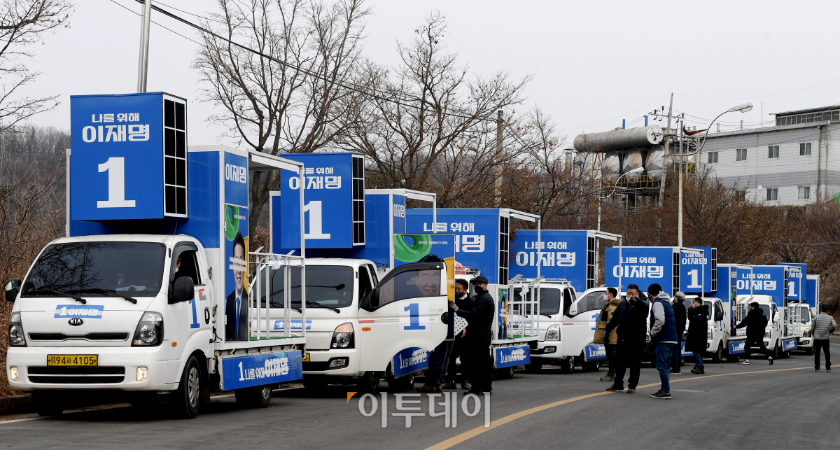 [포토] '출발 기다리는 대선 선거운동 유세차'